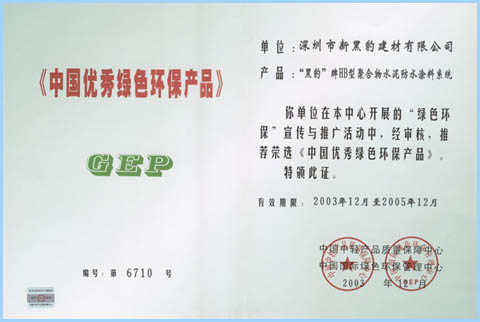中國(guó)優(yōu)秀綠色環(huán)保產(chǎn)品