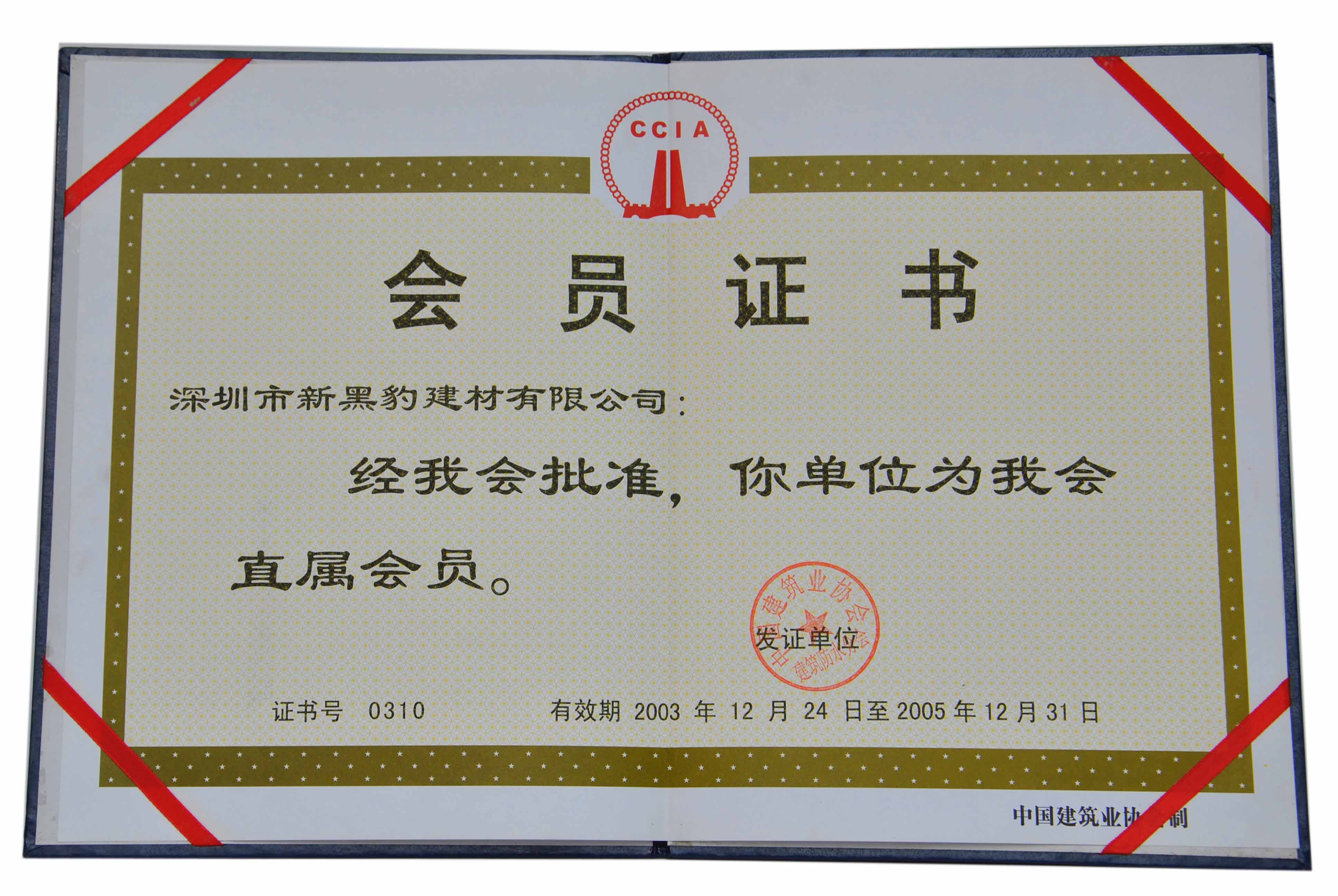 我公司2003年12月獲得中國建筑業(yè)協(xié)會會員證書