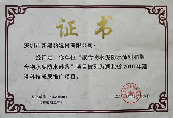 我公司聚合物水泥防水涂料和聚合物水泥防水砂漿被評為湖北省建設科技成果推廣項目。