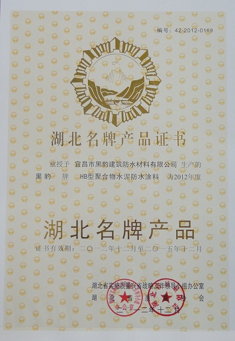 熱列祝賀我公司控股公司宜昌市黑豹建筑防水材料有限公司喜獲2012年度湖北省名牌產(chǎn)品。這是控股公司生的的黑豹防水涂料連續(xù)三屆(九年)被評(píng)為湖北省名牌產(chǎn)品。