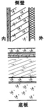 備注:1、各層構(gòu)造均應按有關(guān)施工規(guī)范嚴格操作。 2、防水層基層施工時無明水即可。 3、HB型聚合物水泥防水涂料(JS-II型)HB:水泥=1:(0.9~1.0)。 4、HB型聚合物水泥防水涂料(JS-I型)HB:粉料:水=1:1:(0.0~0.5)。 5、A型HB聚合物防水砂漿(簡稱A型砂漿):HB:水泥:細砂=1:2:4 6、背水面設(shè)防作為迎水面設(shè)防的補充措施,構(gòu)造簡單,維護方便。