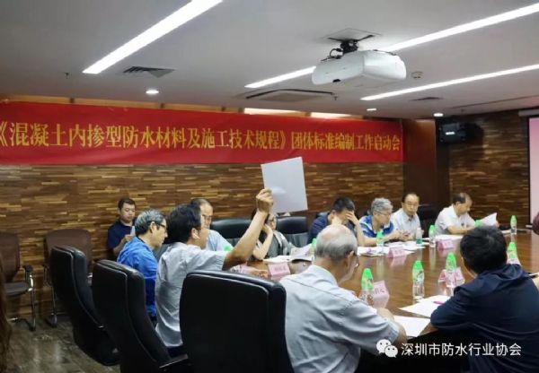 2019年5月16日,在深圳市設(shè)計大廈12樓會議室,深圳市防水行業(yè)協(xié)會組織召開了《混凝土內(nèi)摻型自修復防水材料及施工技術(shù)規(guī)程》團體標準編制工作的啟動會議。